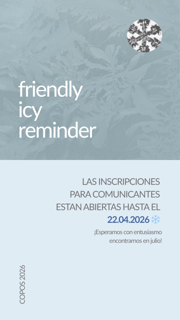 Organismo poético, el lenguaje se expande en el espacio y en el tiempo, precediendo al pensamiento y posibilitándolo. Esta tercera edición del Congreso de COPOS concibe a la poesía como un cuerpo de todos. Un principio de pluralidad atraviesa a la lírica y a la teoría que la acompaña, que la contempla. Teorizar es contemplar, es mirar desde una cierta perspectiva y actitud concentrada y abierta, arraigada y ligera. De ahí que la ‘theōría’ (θεωρία) conlleve detenerse a observar lentamente el lenguaje como organismo fluido, como creación a la vez dialógica e introspectiva, propia y compartida. Más multicultural, más interdisciplinar, más híbrido, más plural, COPOS III desea llegar a todos los rincones donde la poesía pugna por construir un espacio renovado desde el que mirar. Interacción primaria, el cuerpo del lenguaje poético alcanza a todas las artes y formas de expresión; poético es el impulso originario de la imaginación, organismo enactivo.