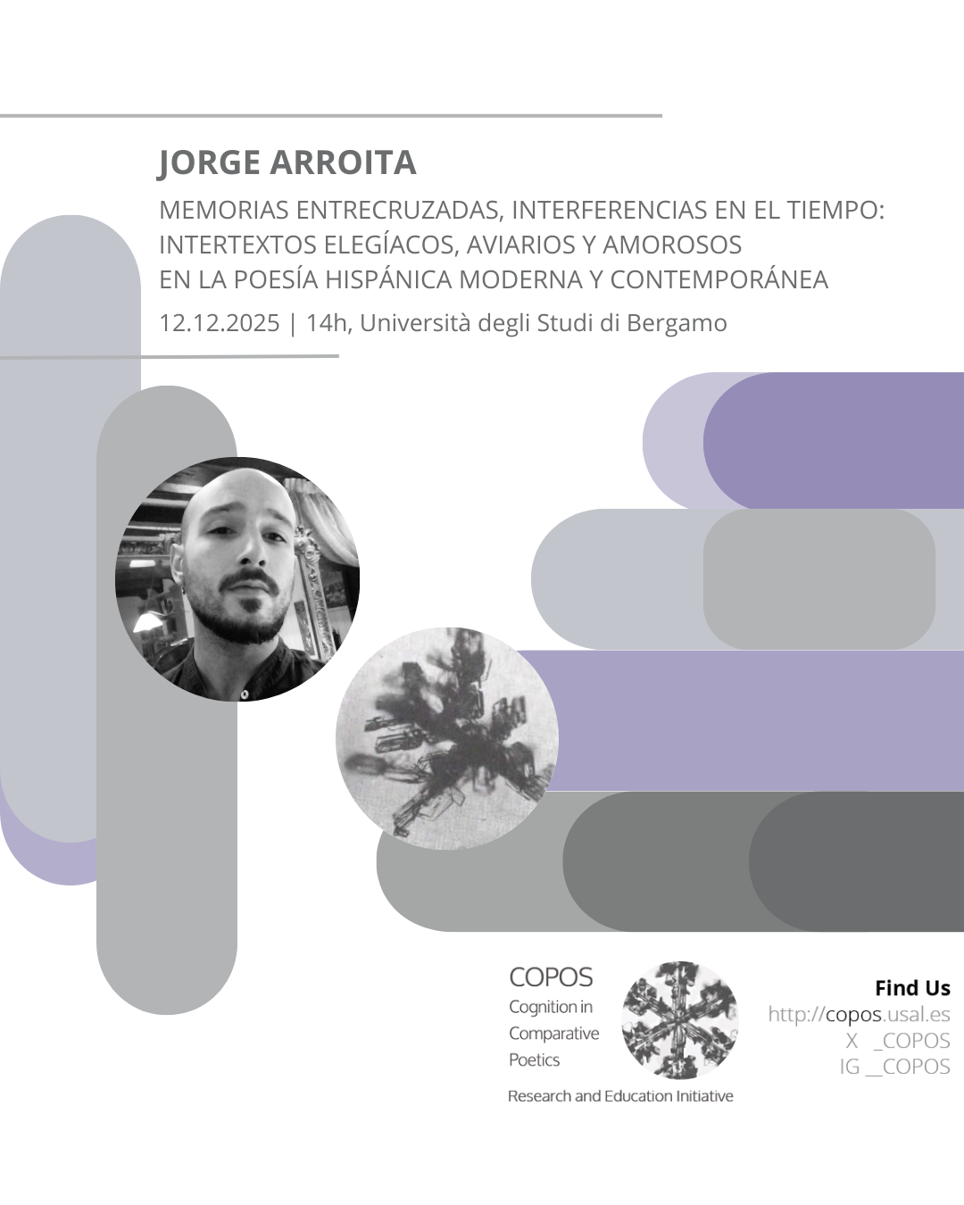 Jorge Arroita impartirá la conferencia «Memorias entrecruzadas, interferencias en el tiempo: intertextetos elegíacos, aviarios y amorosos en la poesía hispánica moderna y contemporánea» en el contexto de su estancia de investigación en la Università degli studi di Bergamo.
